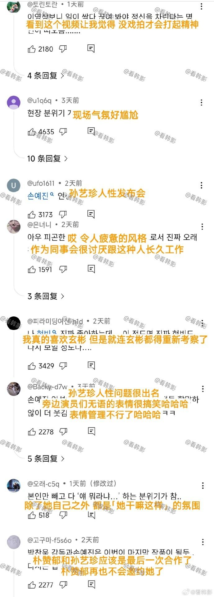 尽管如此,部分韩国网友仍将这段对话解读为“孙艺珍公开表达不满”,更结合同期李秉宪爆料的“孙艺珍片场回避童演提问”(实为片场趣事),进一步质疑其职业态度。批评者认为,公开提及删戏是“不尊重导演”;而支持者则反驳,这不过是演员正常表达遗憾,且现场明显是玩笑互动,“看完整视频根本没问题”。